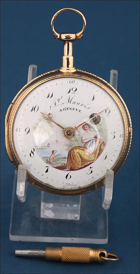 Antique 18K Gold Verge-fusee Pocket Watch by JR Mauris. C. 1810, Geneva, Switzerland