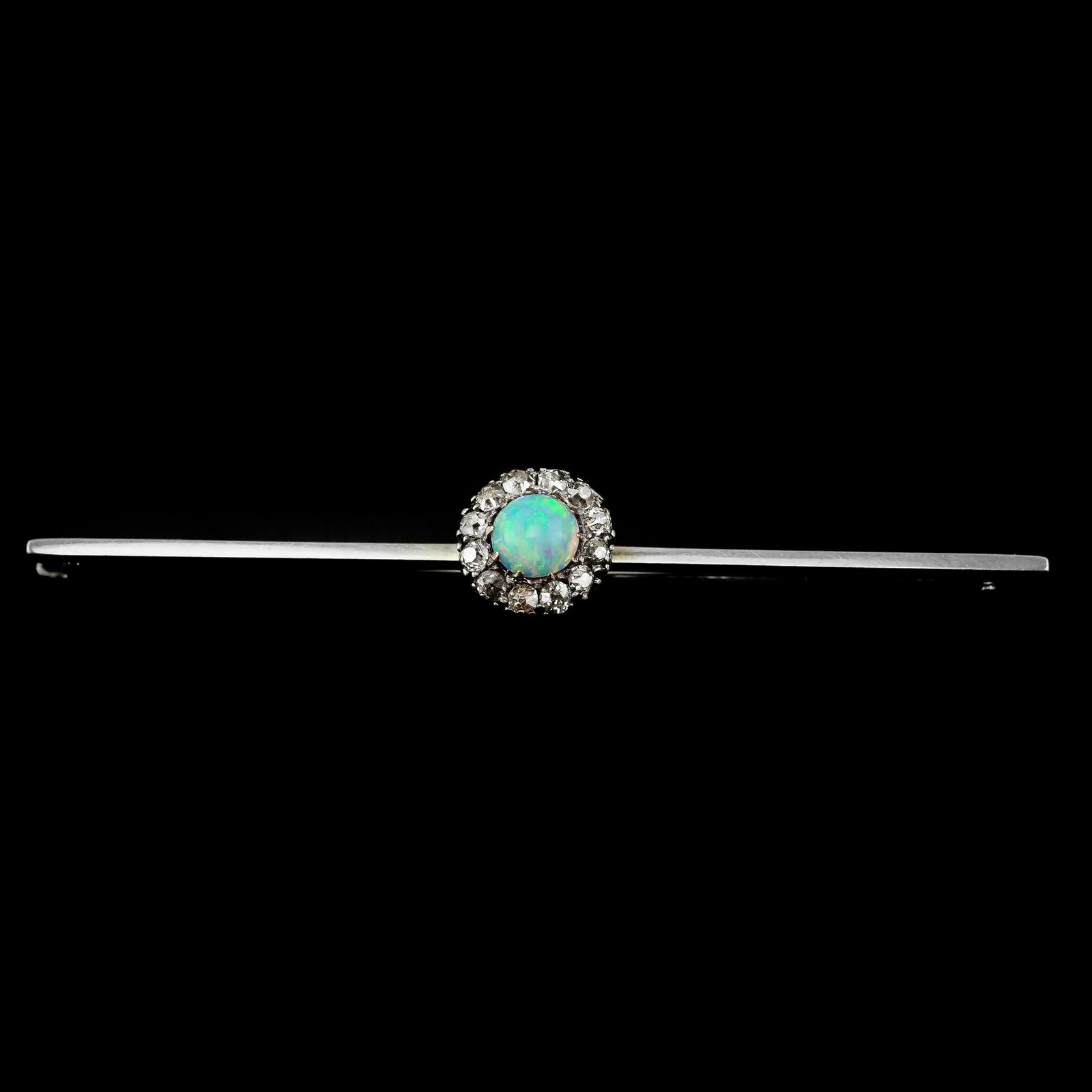 Antique 18k White Gold Opal & Diamond Cluster Pin Brooch (1 of 14)