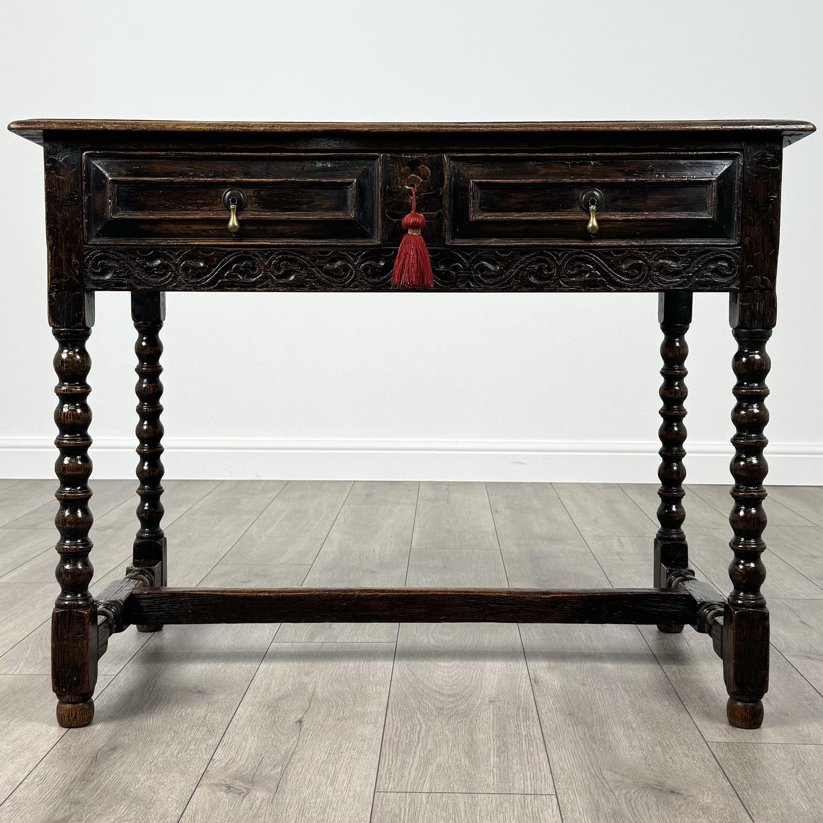 Antique 18th Century Bobbin Turned Writing Table In Oak