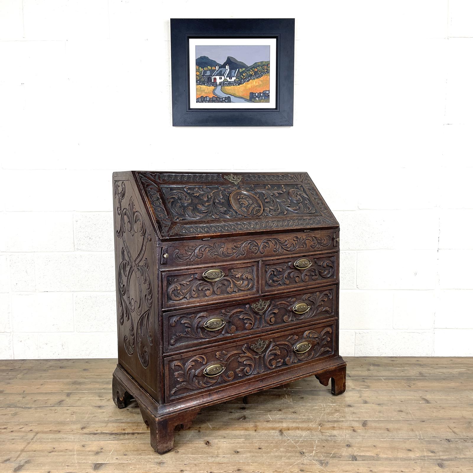 Antique 18th Century Carved Oak Bureau (1 of 12)