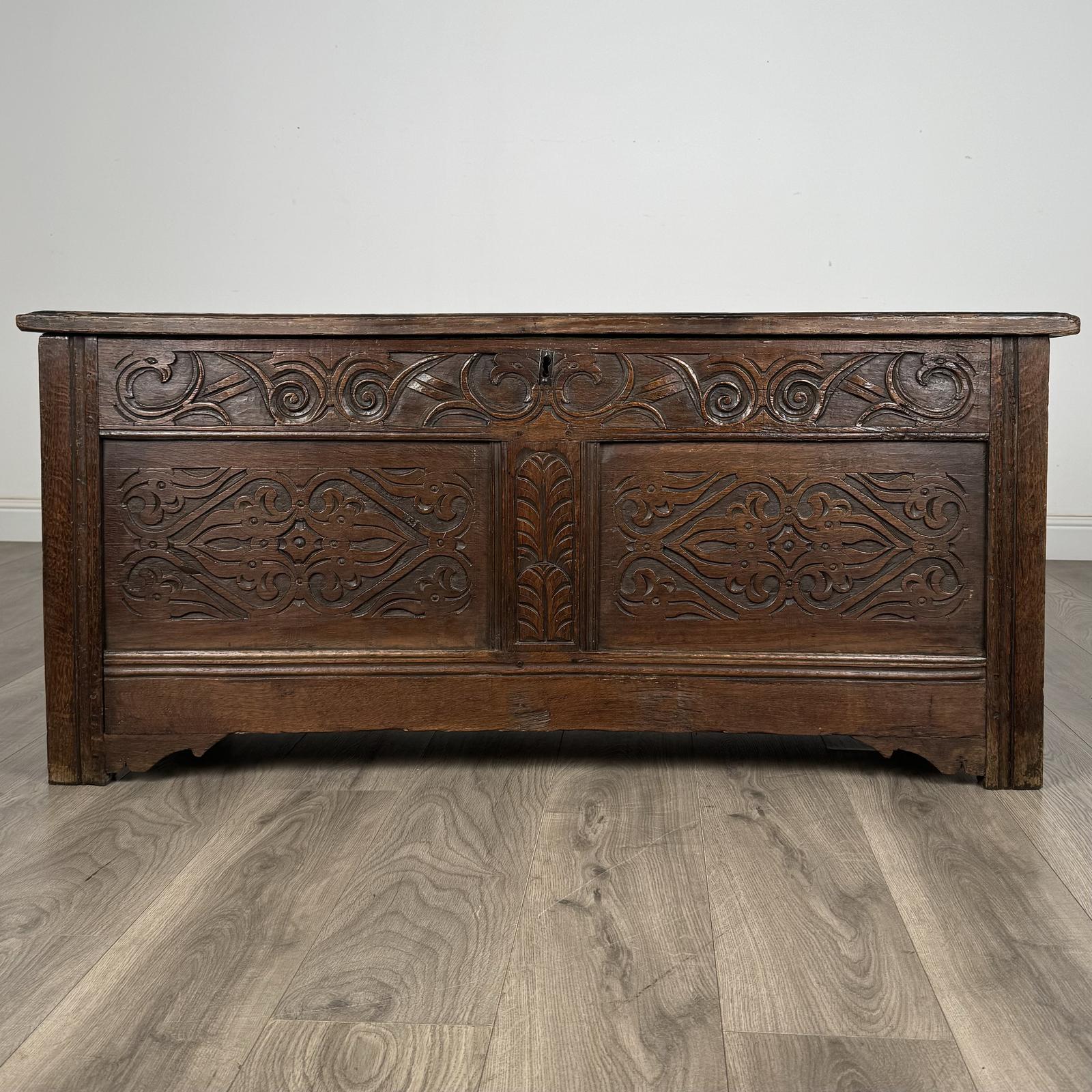 Antique 18th Century Carved Oak Coffer (1 of 10)