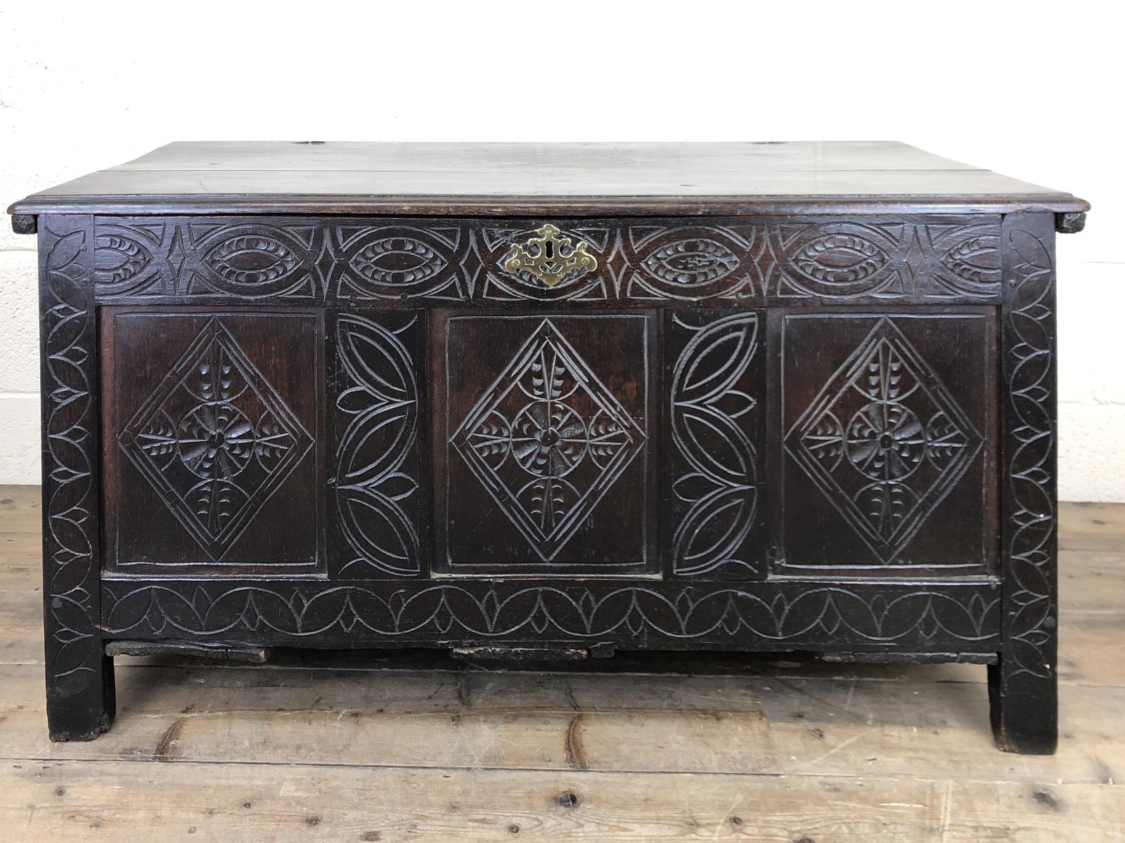 Antique 18th Century Carved Oak Coffer (M-1635) (1 of 13)