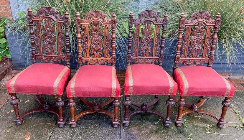Antique 18th Century Daniel Marot-style Carved Walnut High-back Side Chairs c.1750 - Set of 4