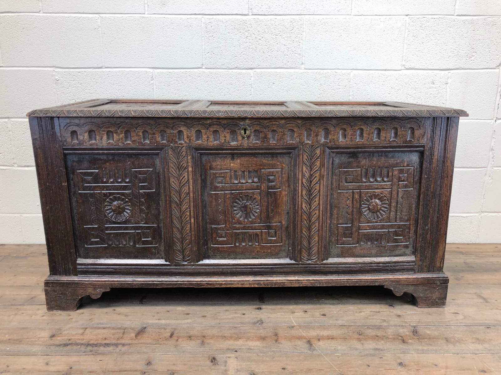 Antique 18th Century Large Carved Oak Coffer (1 of 12)