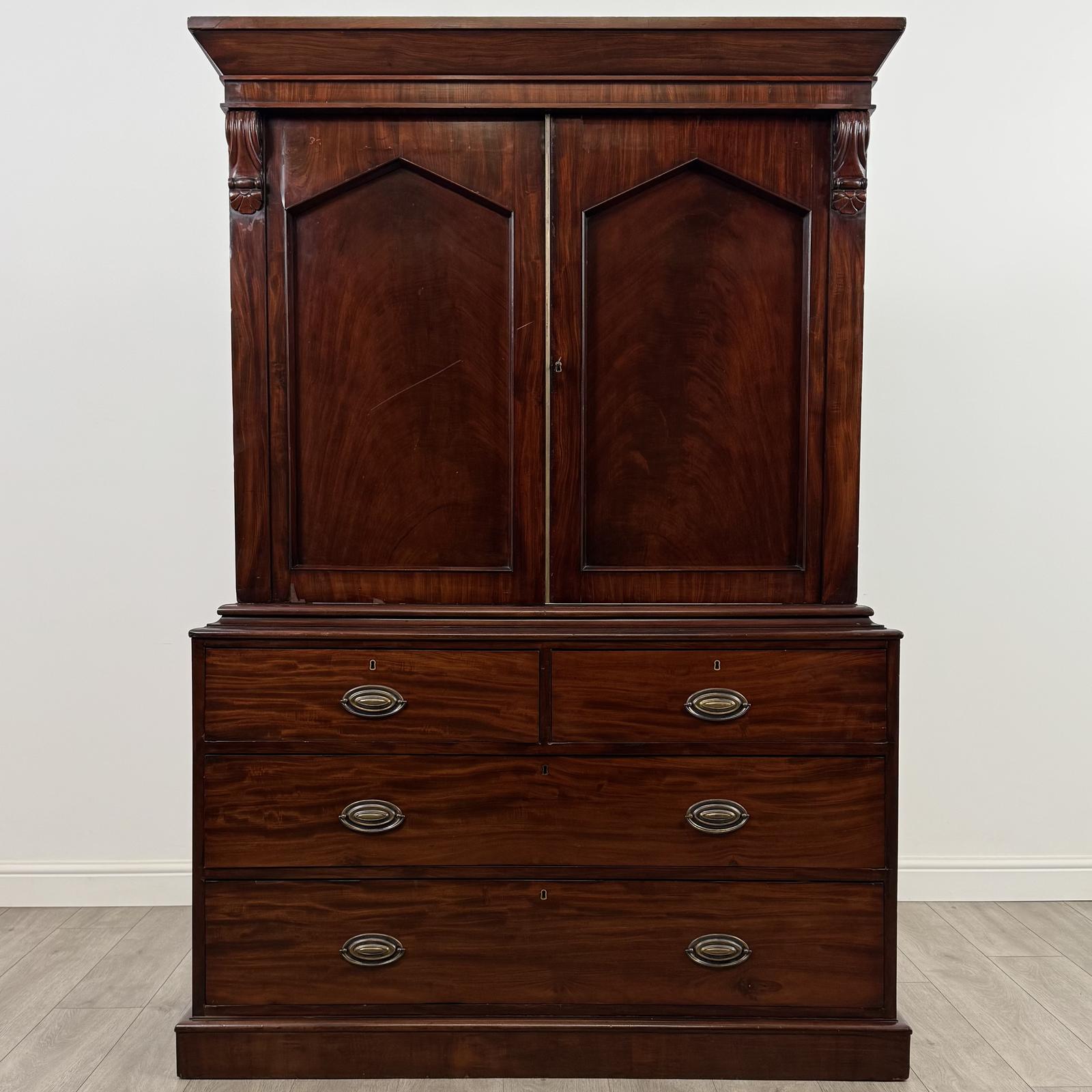 Antique 18th Century Linen Press Cupboard In Mahogany