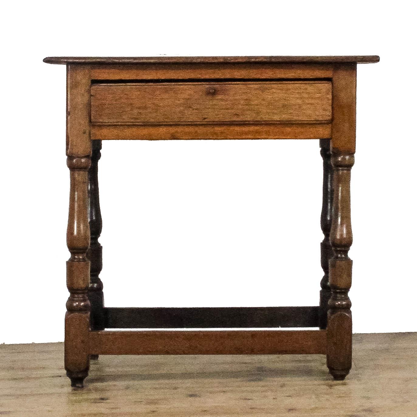 An 18th Century oak side table of pleasing proportions and useful size. The table has a single frieze drawer above turned legs united by perimeter stretchers. The top is formed of two wide oak boards, showing good colour and patina. The oak has developed a lovely, warm tone.