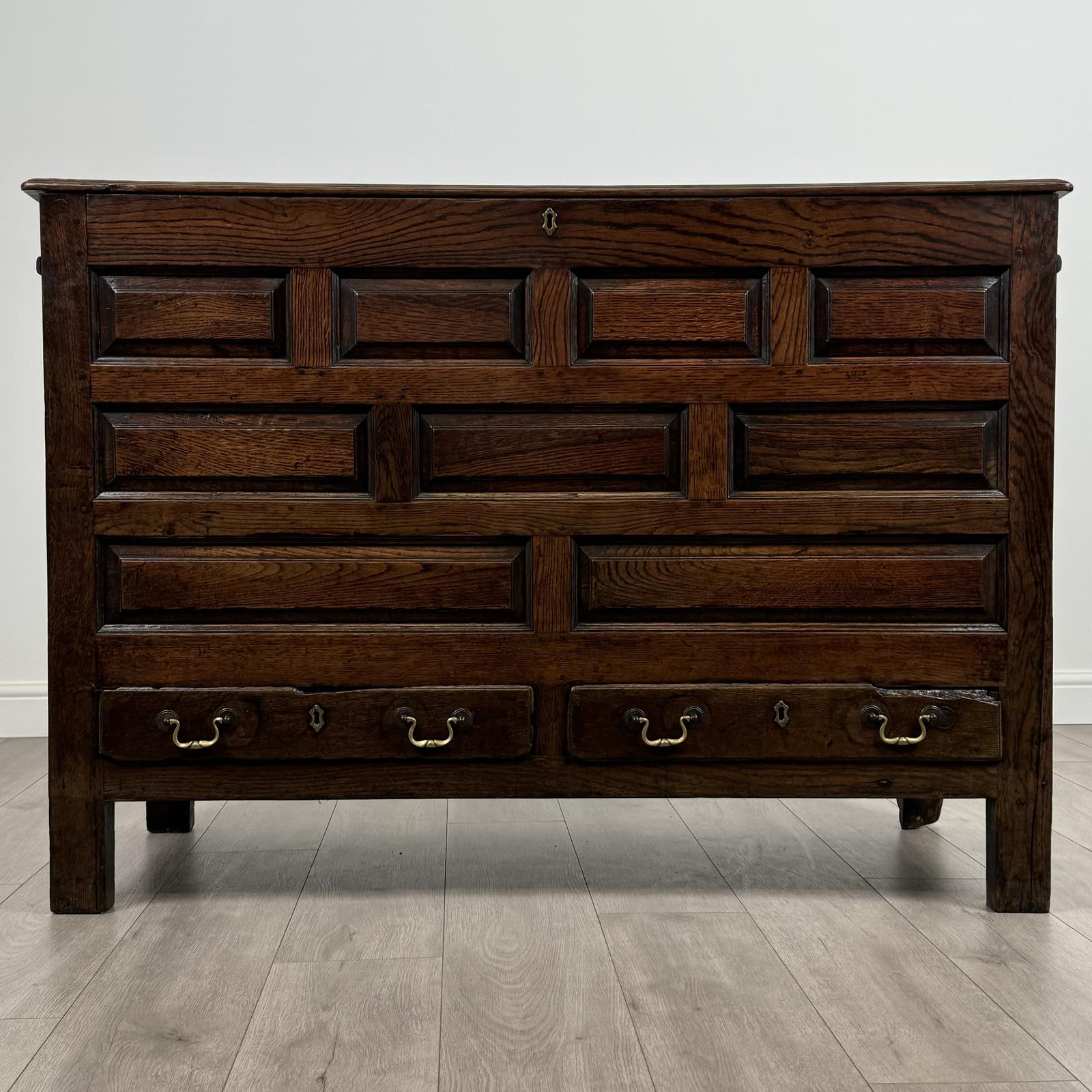 Antique 18th Century Unique Design Mule Chest in Oak