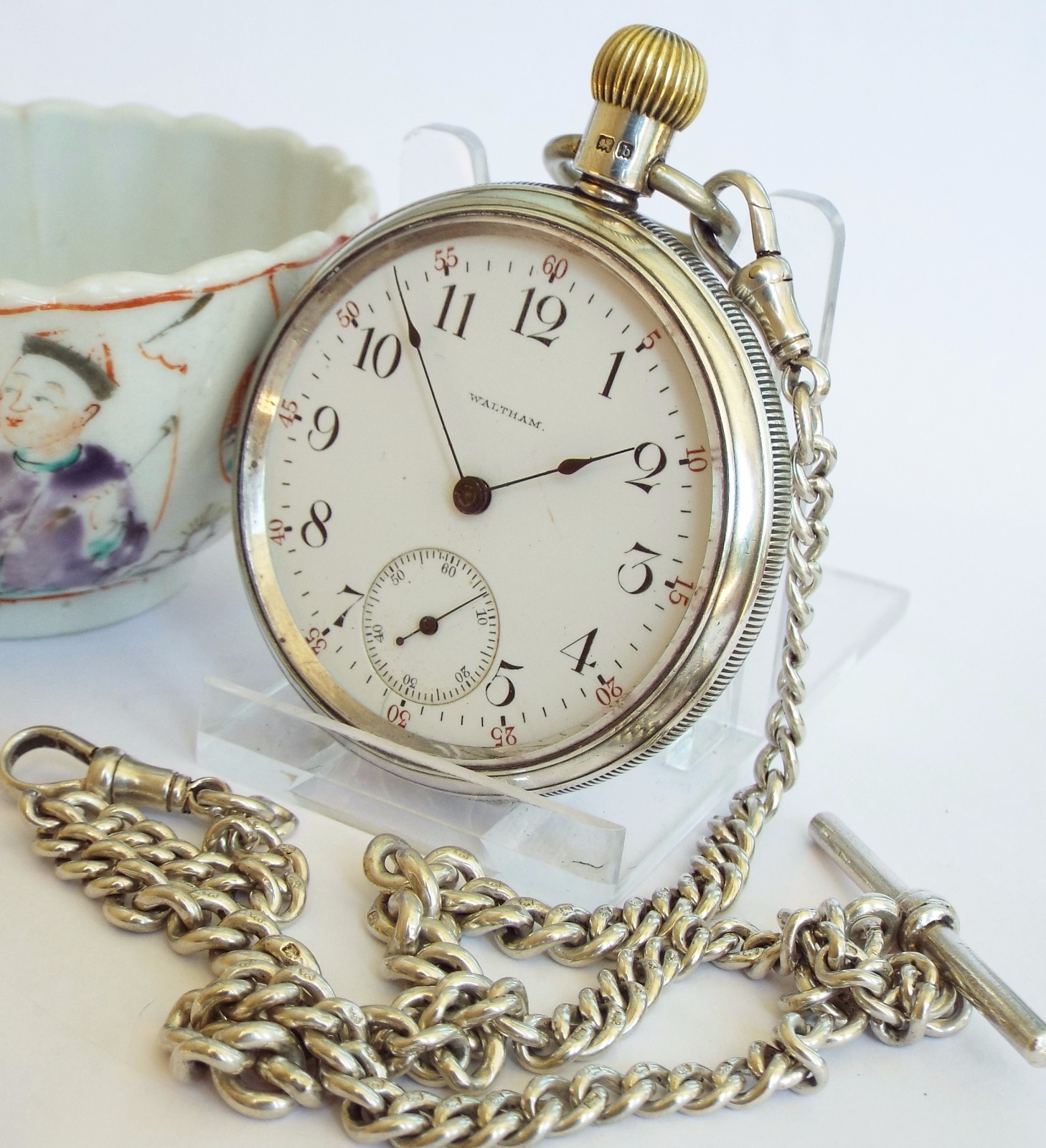 Antique 1901 Waltham Riverside Pocket Watch and Double Albert