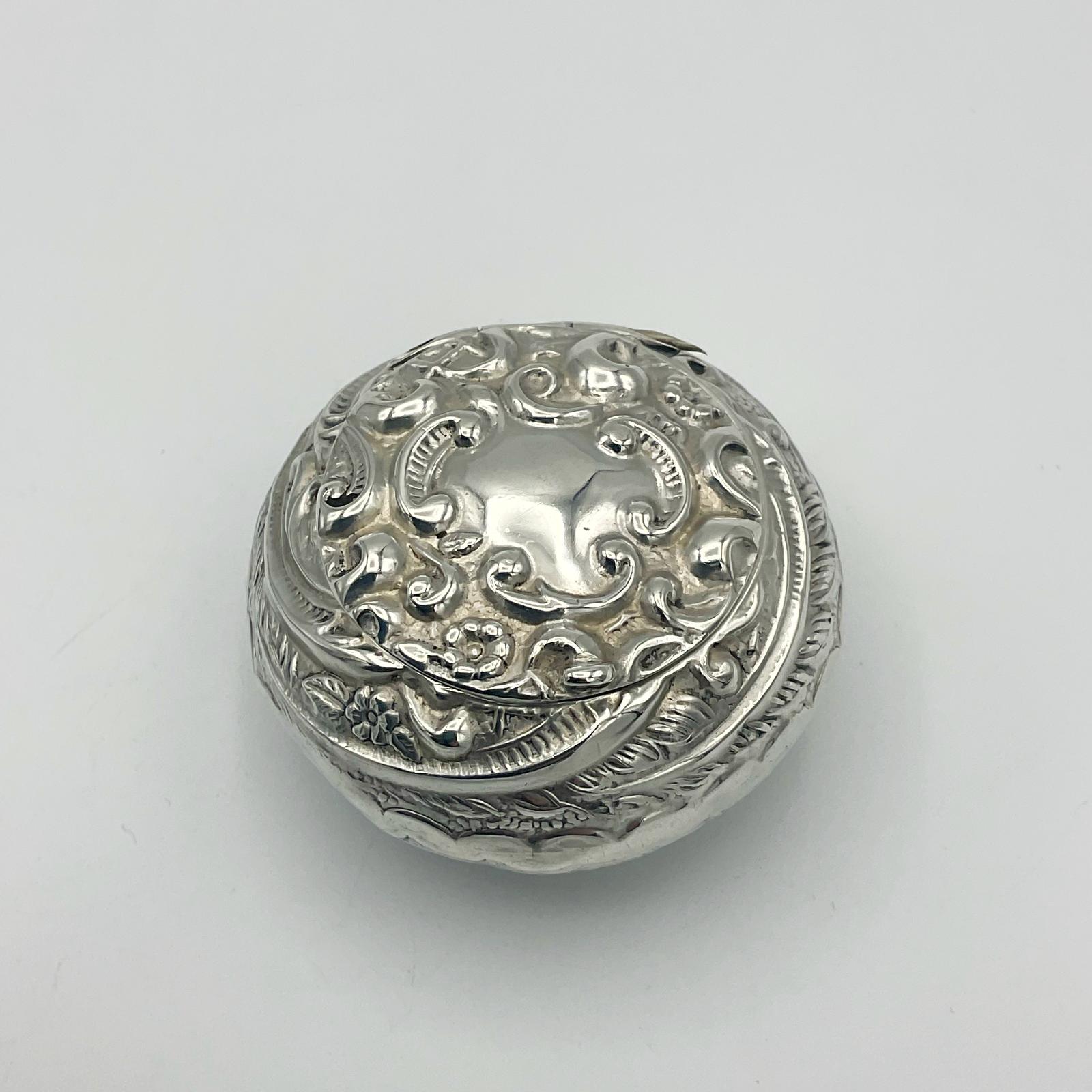 Antique 1902 Embossed Solid Silver Pill Box (1 of 11)