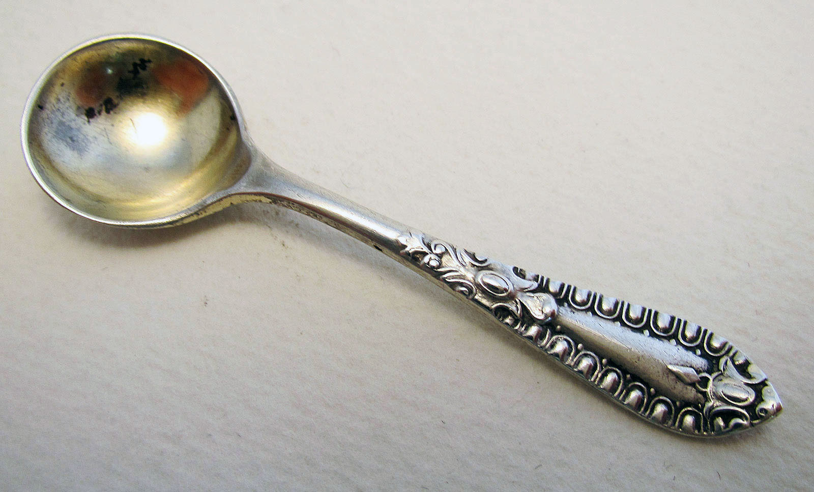 Antique 1902 Solid Sterling Silver 'Gadrooned Edge' Pattern English Mustard or Salt Spoon, Condiment Spoon, Small Size Length 2 1/2 (1 of 1)