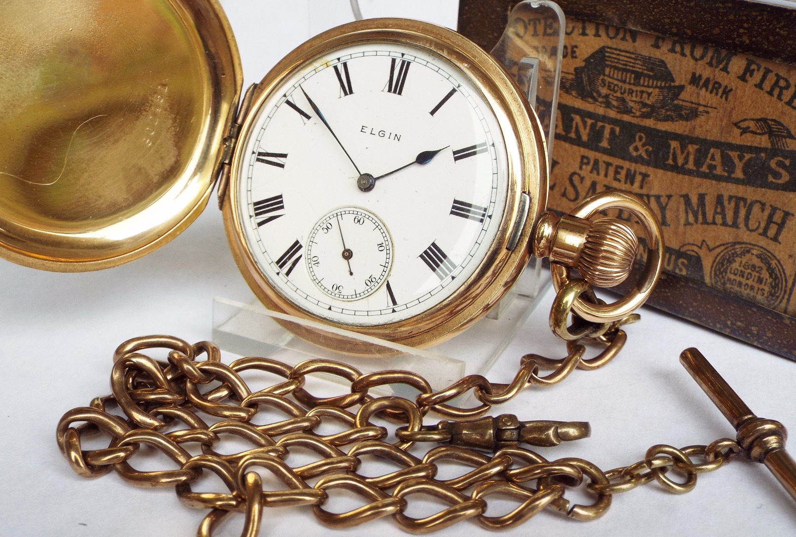 Antique 1905 Elgin Hunter Pocket Watch & Chain
