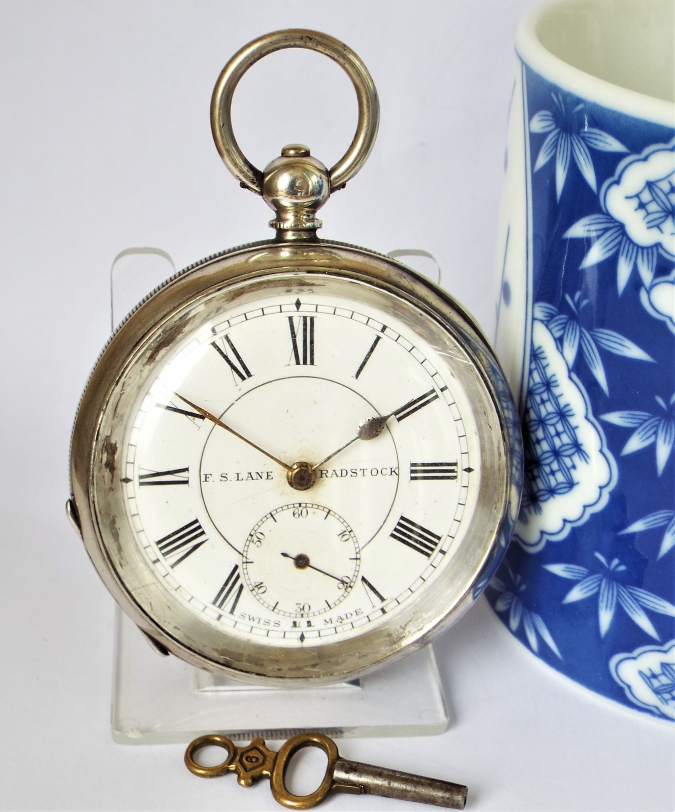 Antique 1907 Silver Pocket Watch, F S Lane, Radstoc