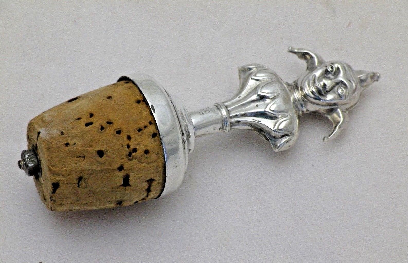 Antique 1907 Solid Silver Court Jester Large Decanter or Bottle Stopper
