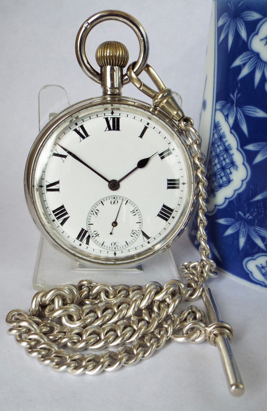 Antique 1915 Silver Limit Pocket Watch & Chain