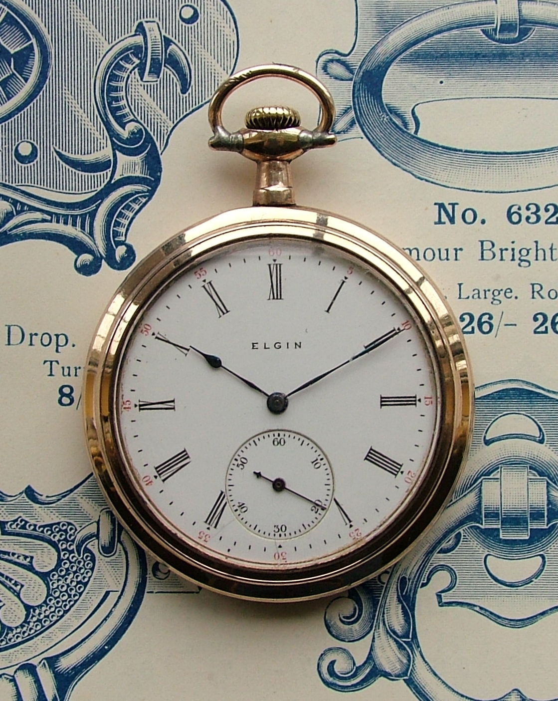 Antique 1917 Gold Plated Elgin Stem Winding Pocket Watch