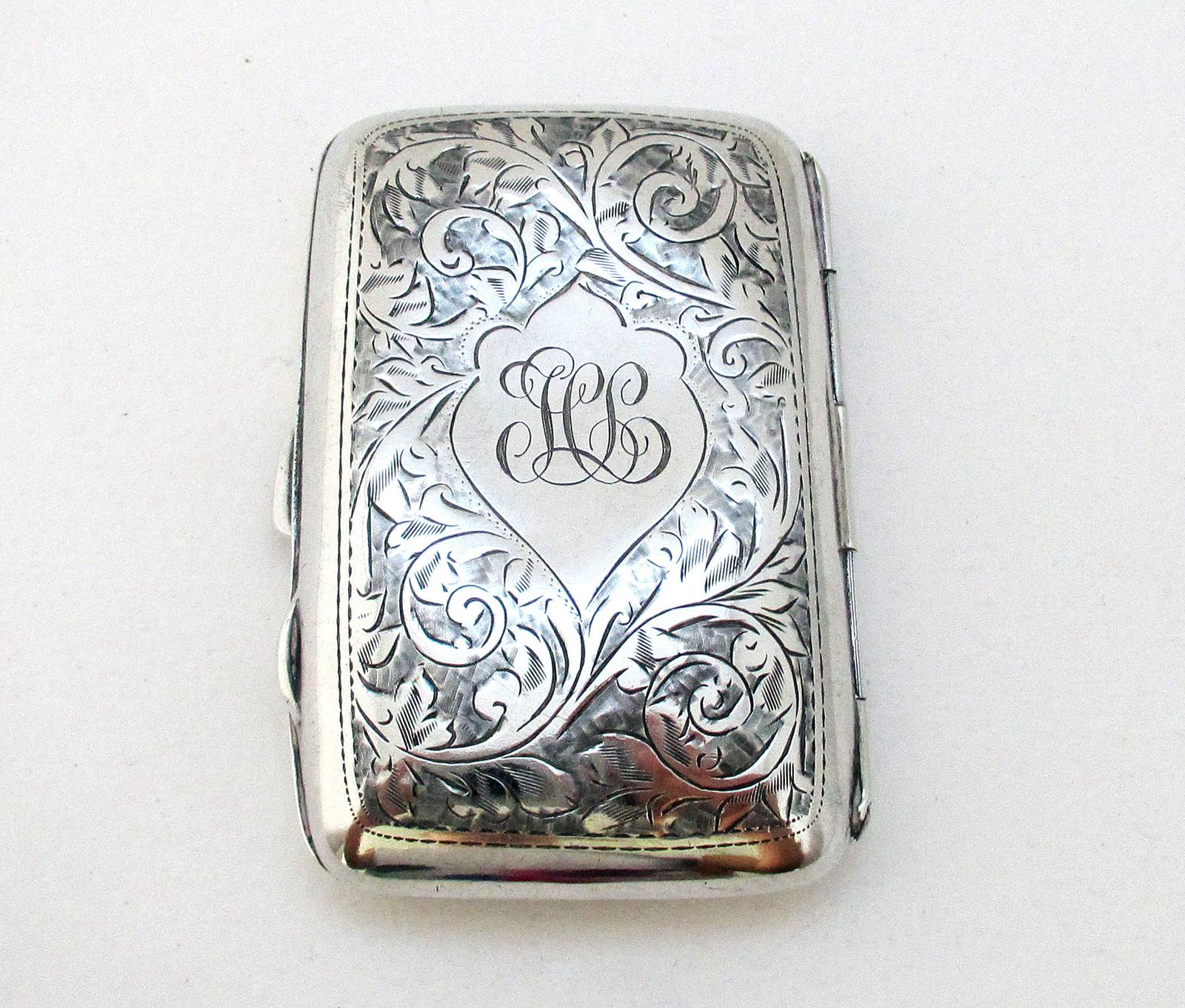 Antique 1918 English Hallmarked Solid Sterling Silver Small Engraved Cigarette Case
