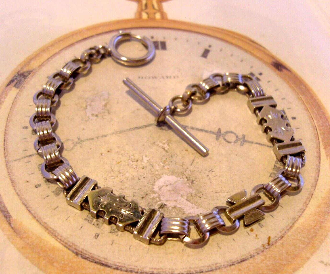 Antique 1920s Pocket Watch Chain Silver Nickel Fancy Albert With T Bar 23.7 Grams
