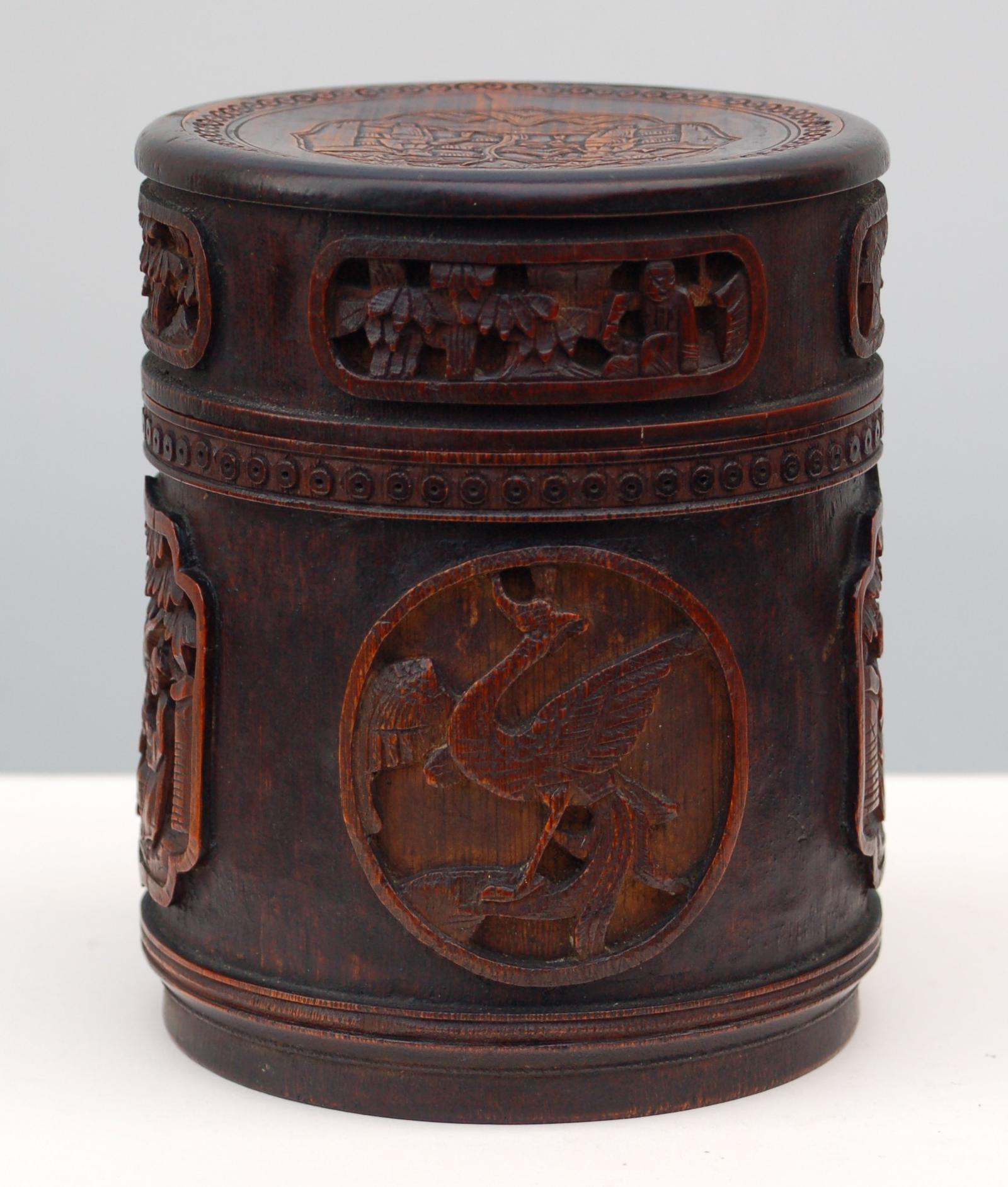Antique 19th C Chinese Carved Bamboo Tea Caddy Qing