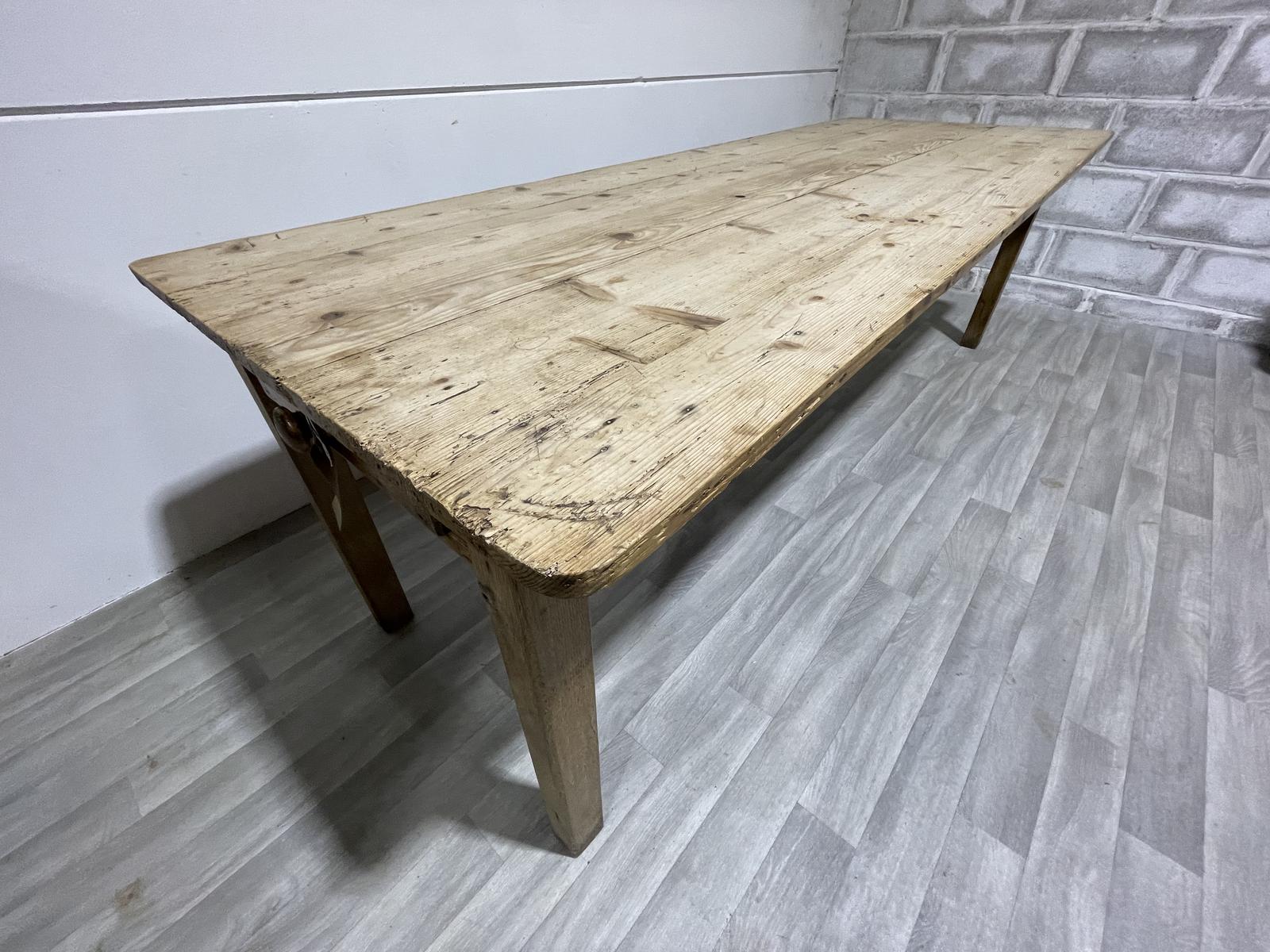 Antique 19th Century 8ft Pine Prep Large Dining Table - Seats 10
