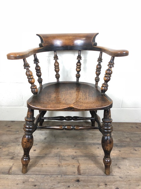 Antique 19th Century Ash & Elm Captain’s Chair or Smoker’s Bow Chair (1 of 1)