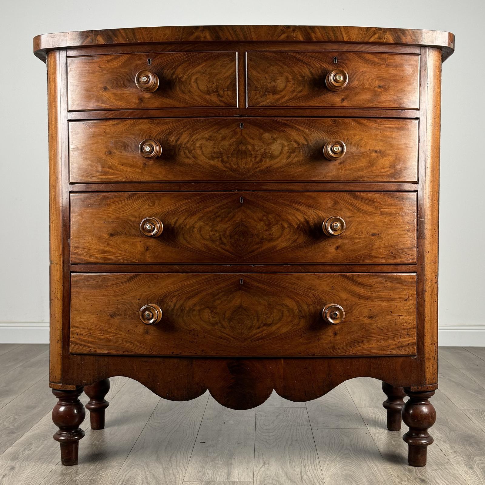 Antique 19th Century Bow Fronted Chest of Drawers in Mahogany