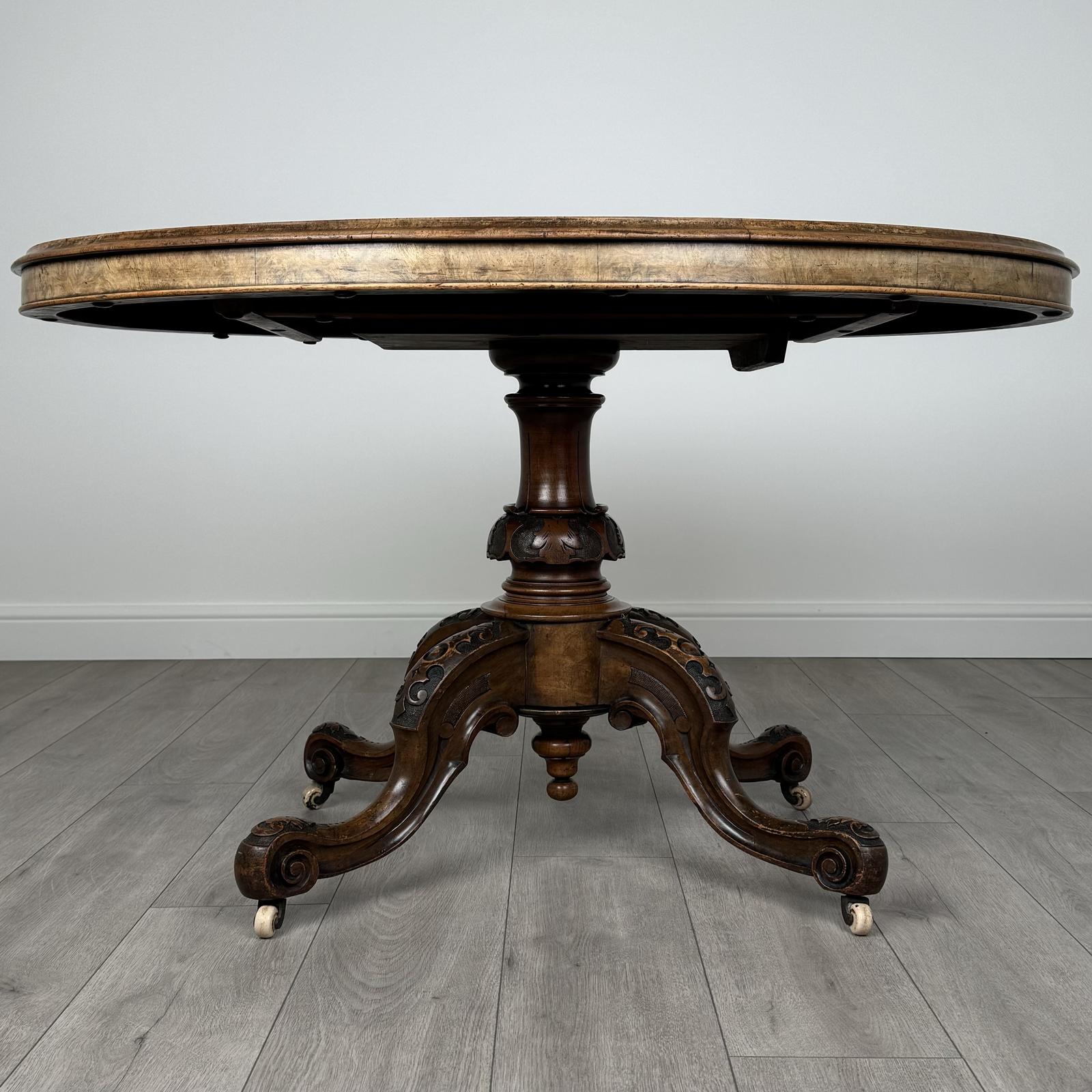 Antique 19th Century Burr Walnut Tilt Top Centre Table