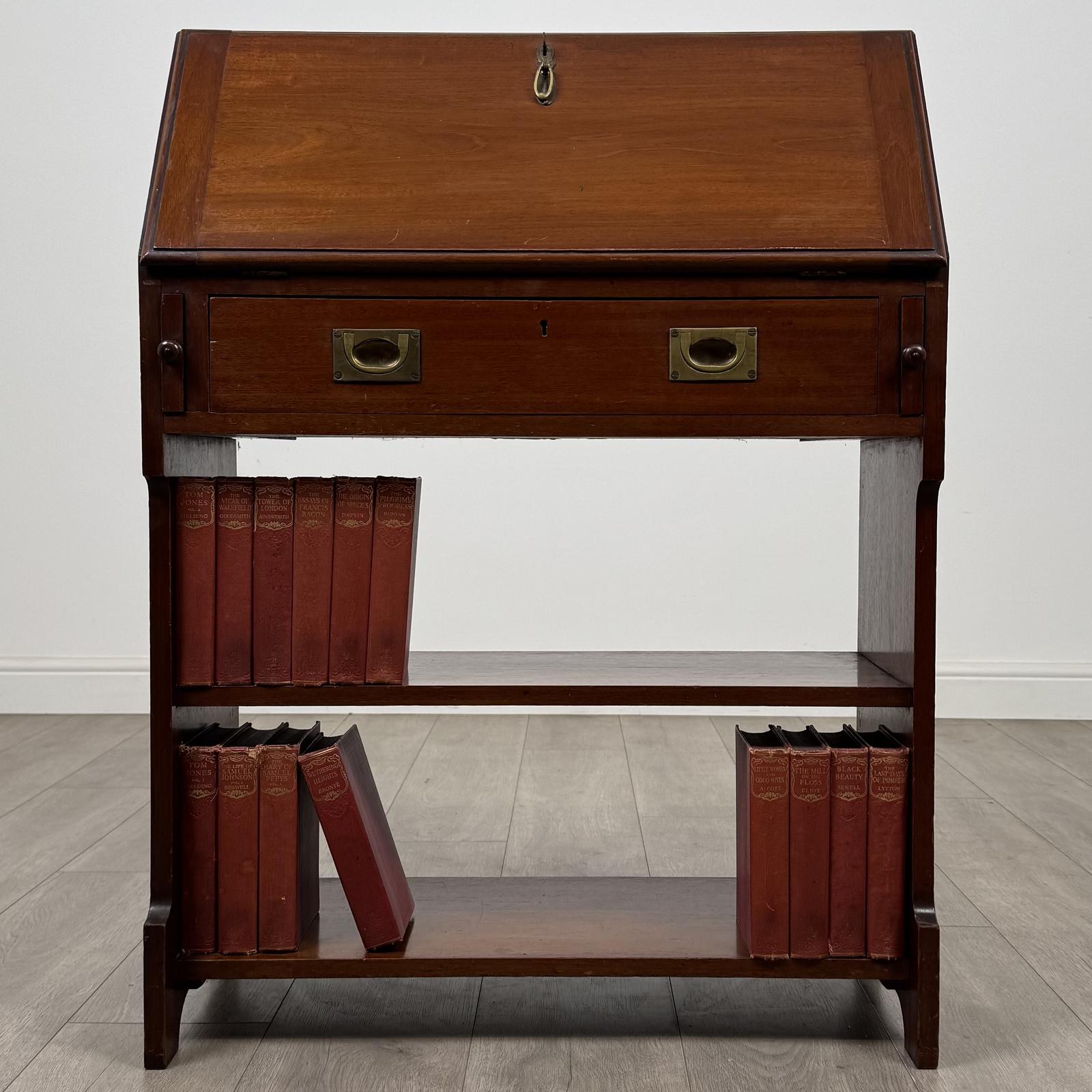 This Antique 19th Century Campaign Style Bureau In Mahogany is located in Worcestershire, United Kingdom