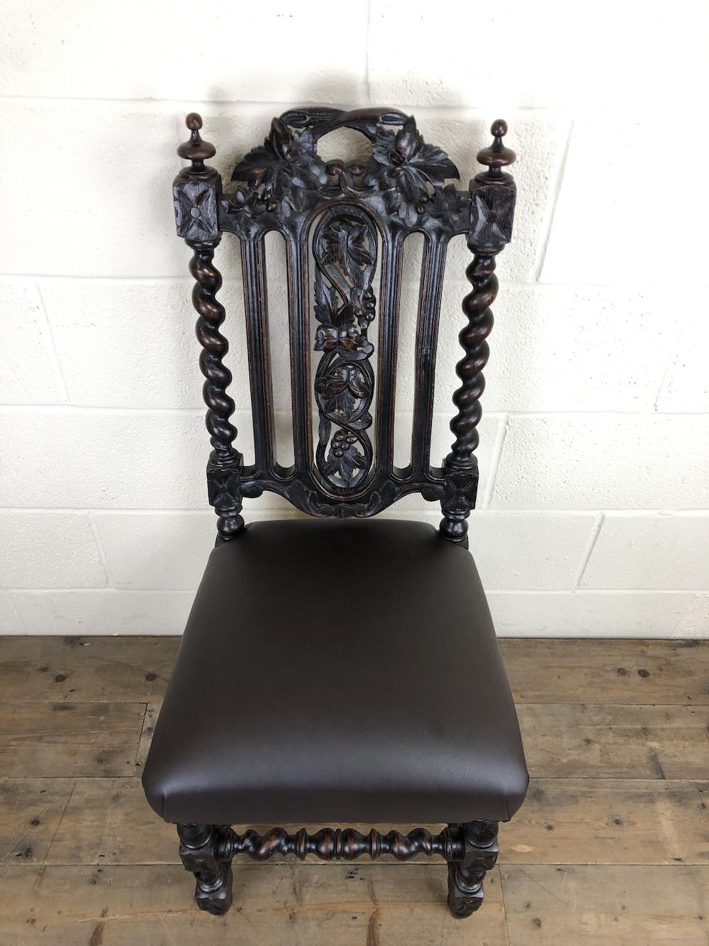 Antique 19th Century Carved Chair with Leather Seat (M-193) (1 of 14)