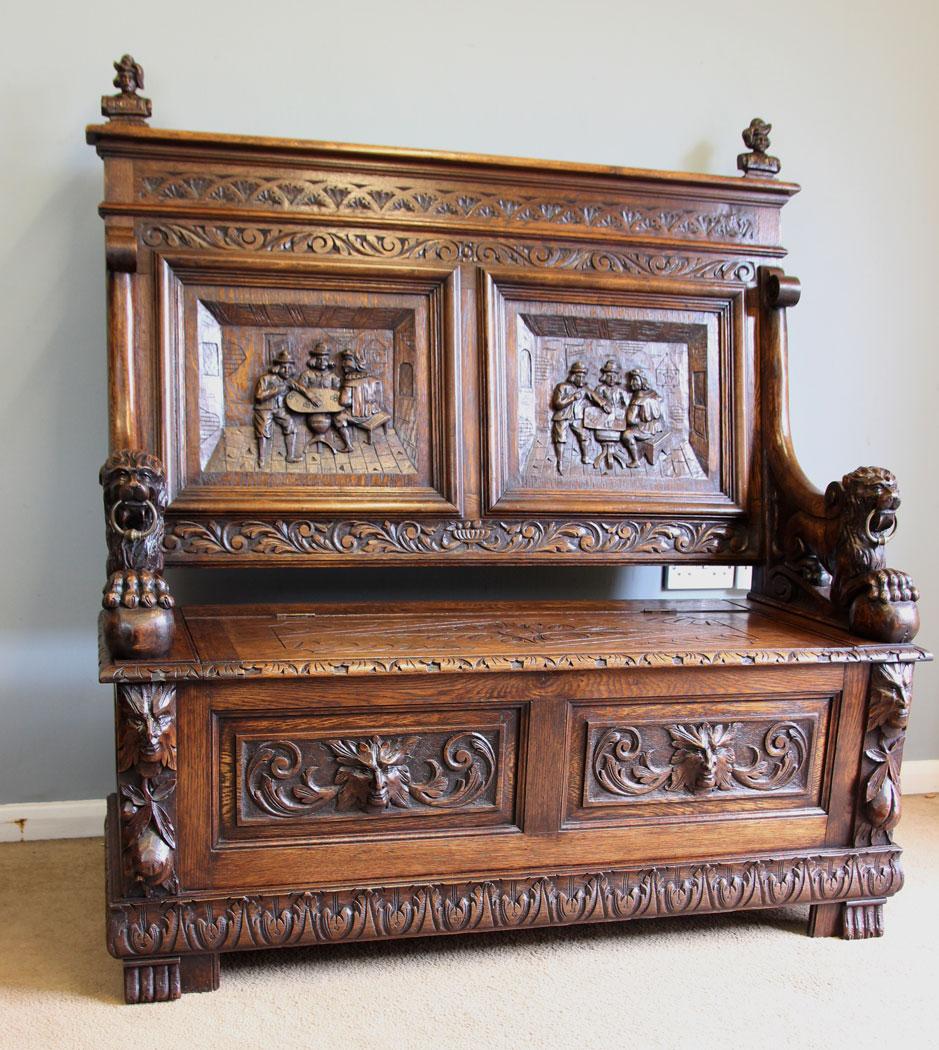 Antique 19th Century Carved Monks Bench Oak Settle (1 of 15)