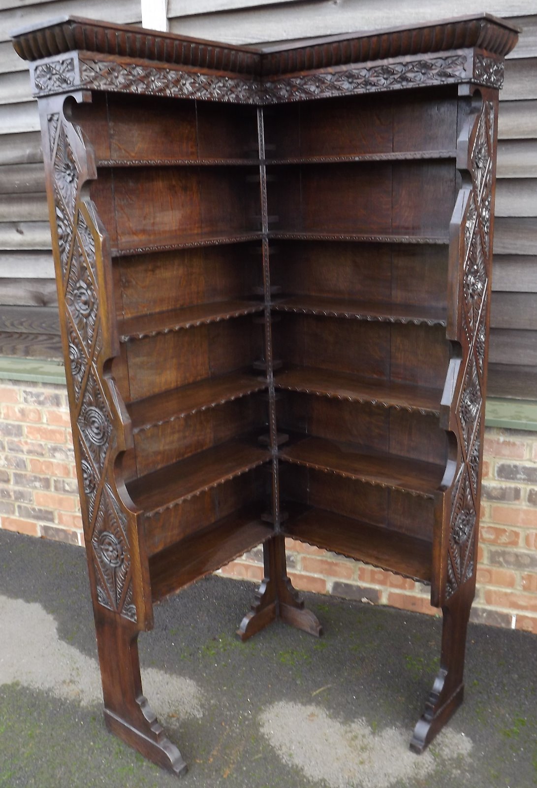 Antique 19th Century Carved Oak Corner Bookcase