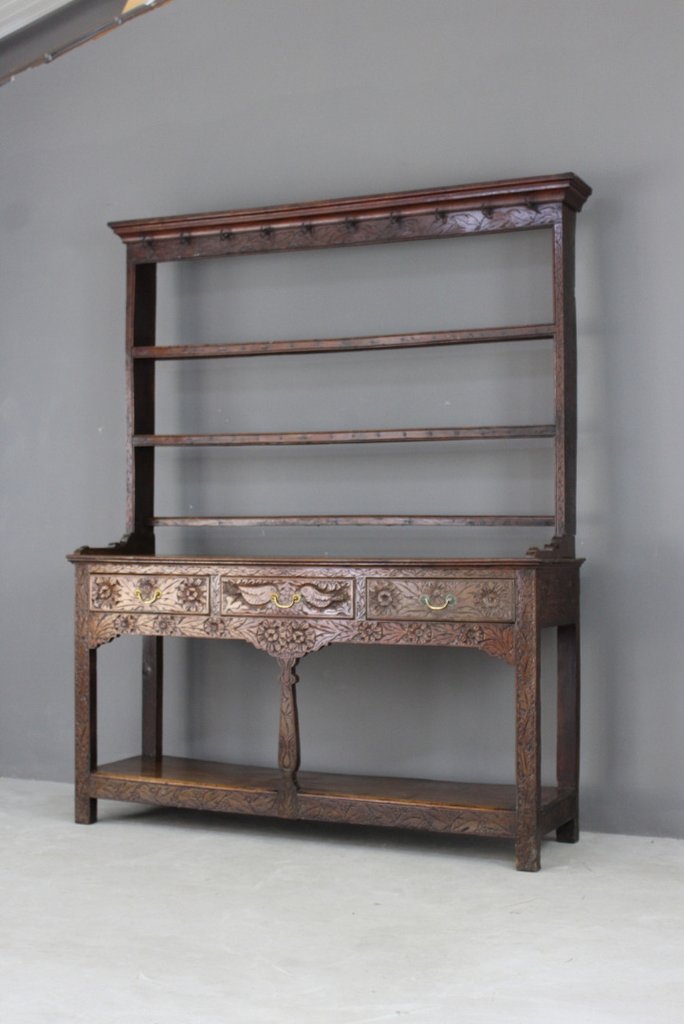 Antique 19th Century Carved Oak & Elm Dresser (1 of 1)