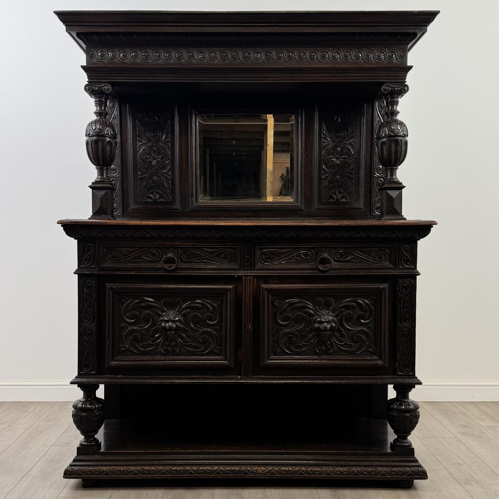 This Antique 19th Century Carved Oak Mirror Back Sideboard is located in Worcestershire, United Kingdom