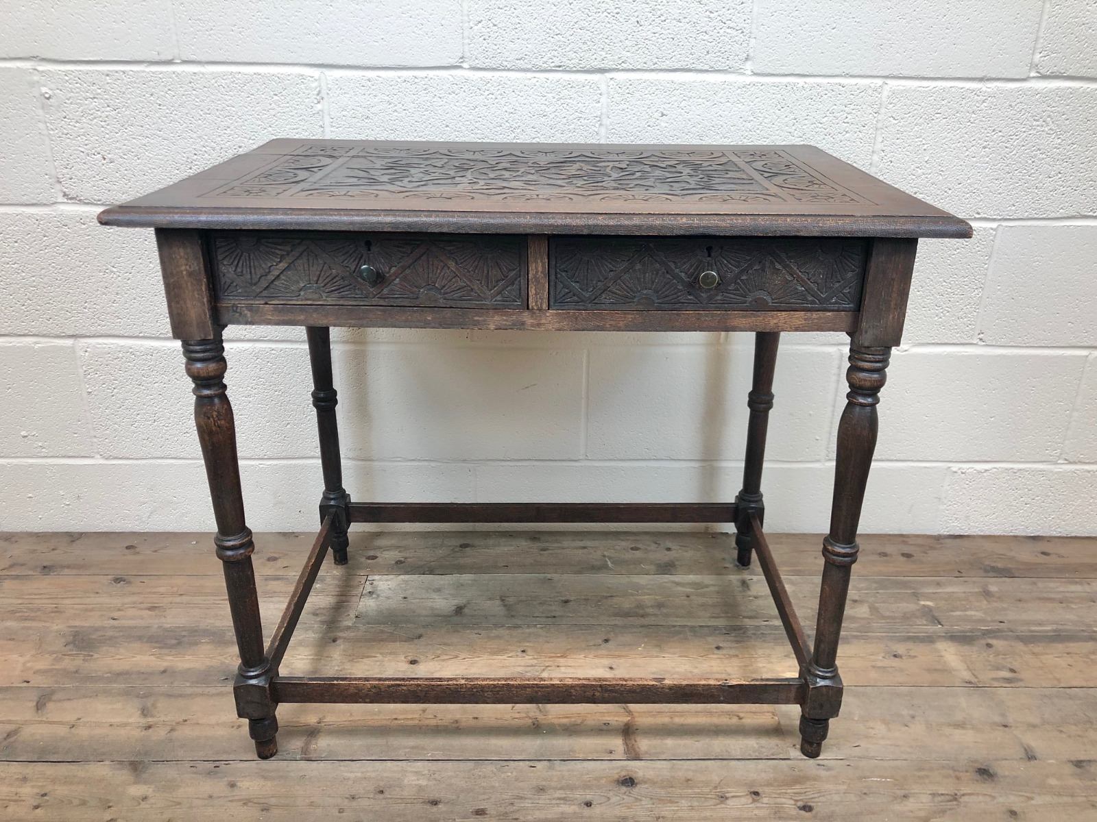 Antique 19th Century Carved Oak Side Table