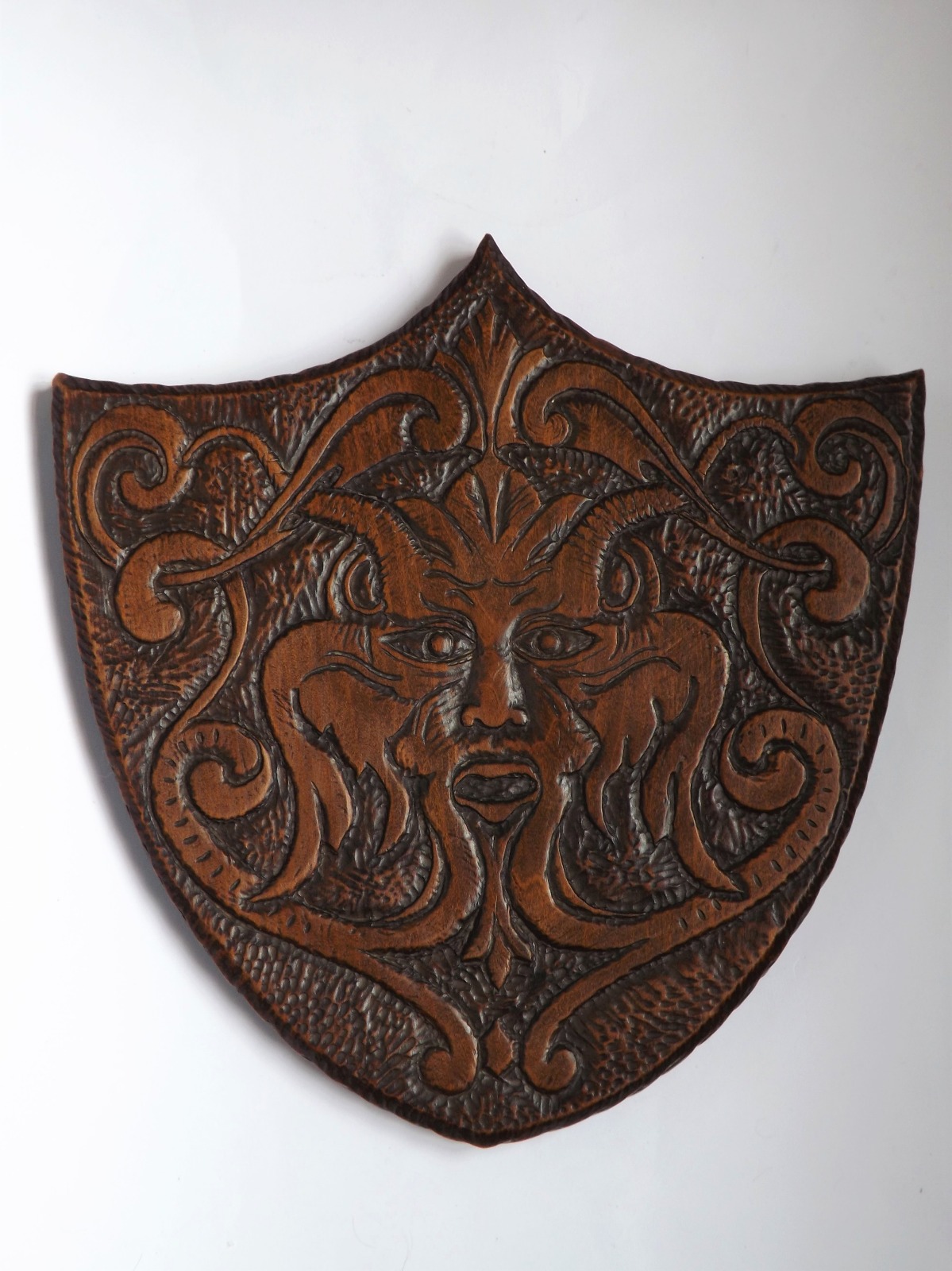Antique 19th Century Chip Carved Green Man Wall Plaque C.1880