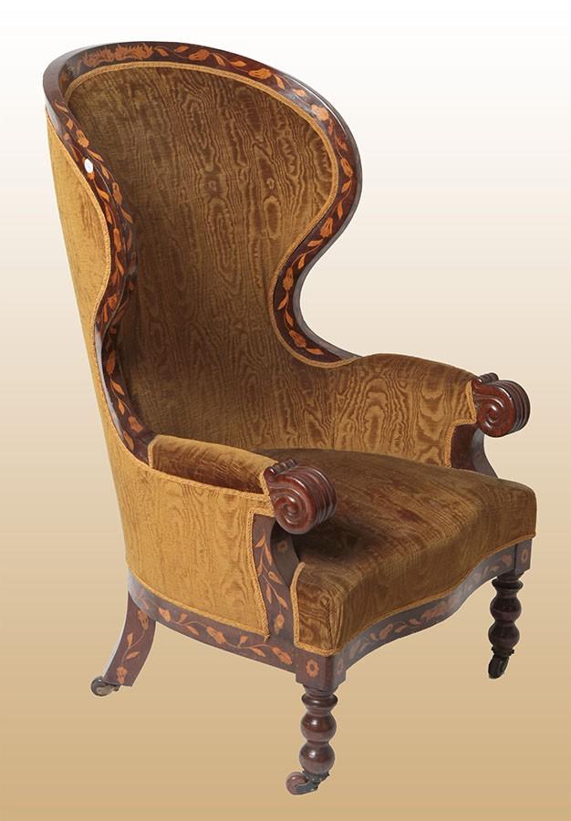 Antique 19th Century Dutch Bergere Armchair in Mahogany with Inlays
