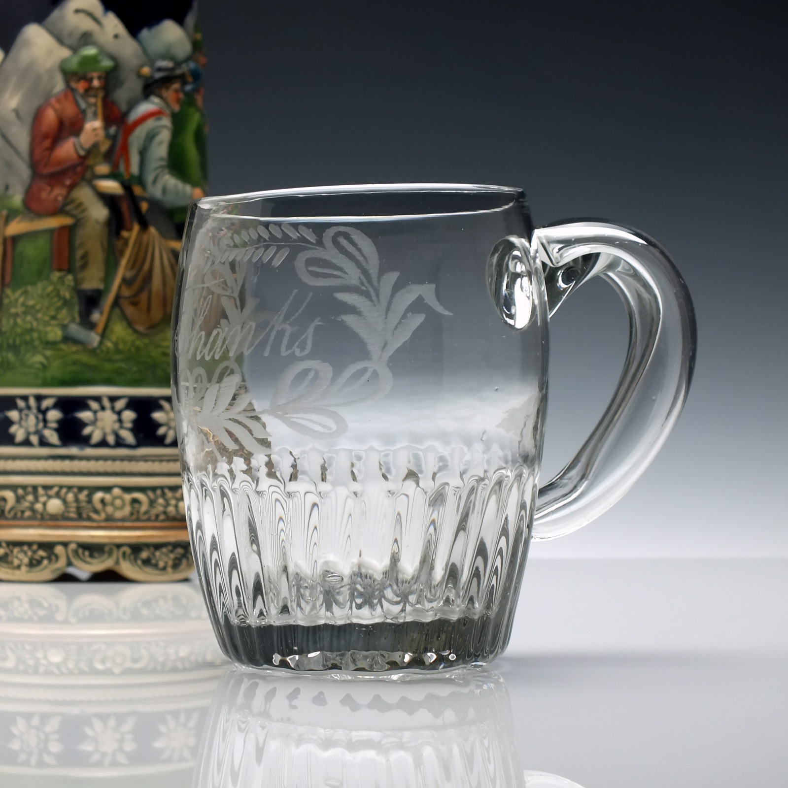Antique 19th Century Engraved Glass Dutch Tankard c.1810