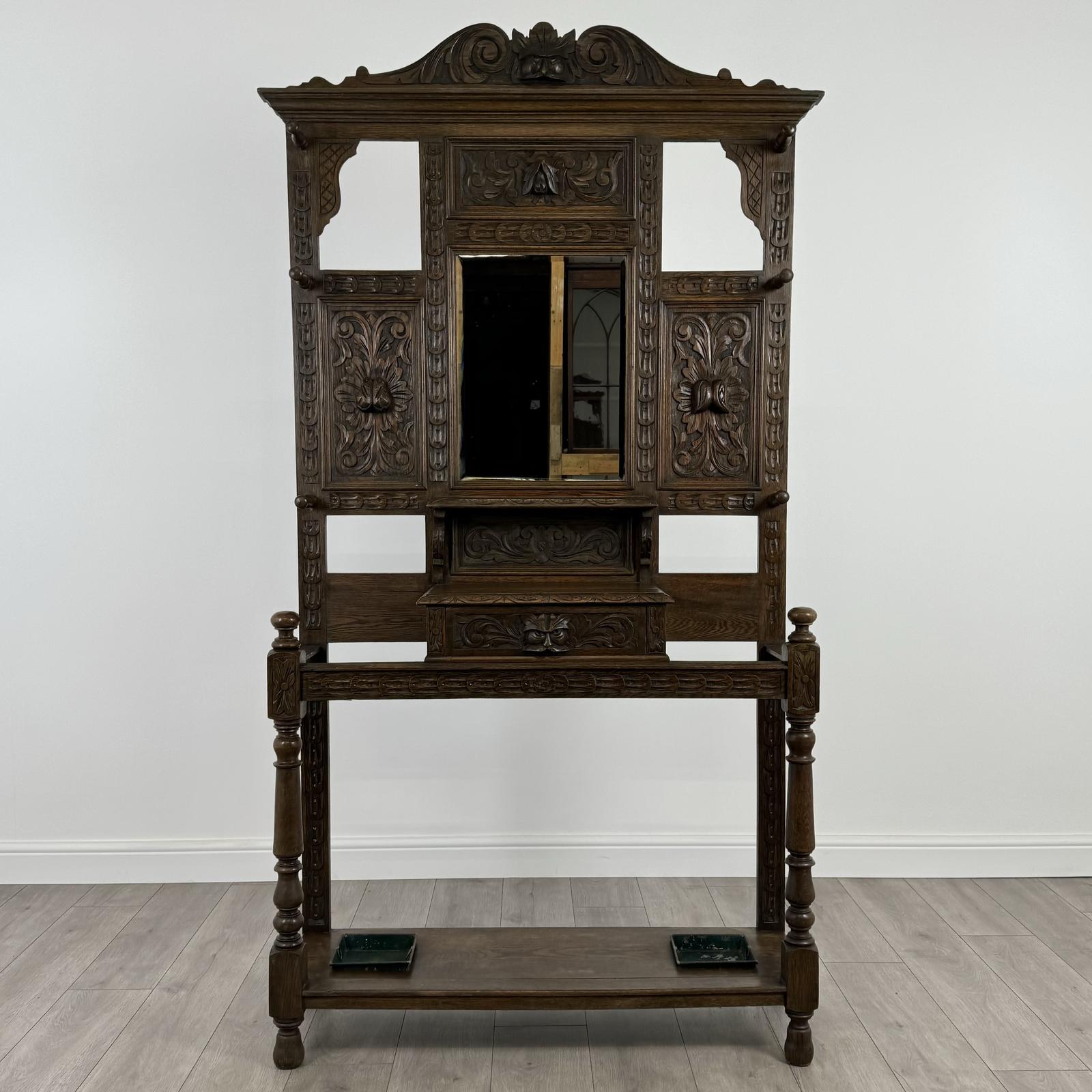 Antique 19th Century Fine Quality Carved Oak Hall Stand