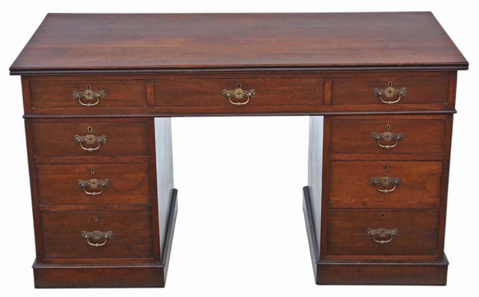 Antique 19th Century Fine Quality Large Oak Twin Pedestal Desk – Dressing or Writing Table (1 of 7)