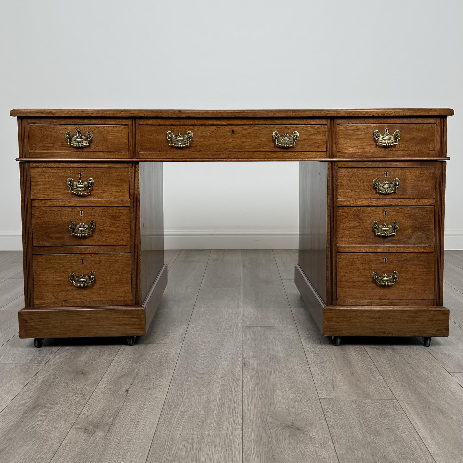 Antique 19th Century Fine Quality Pedestal Desk In Walnu