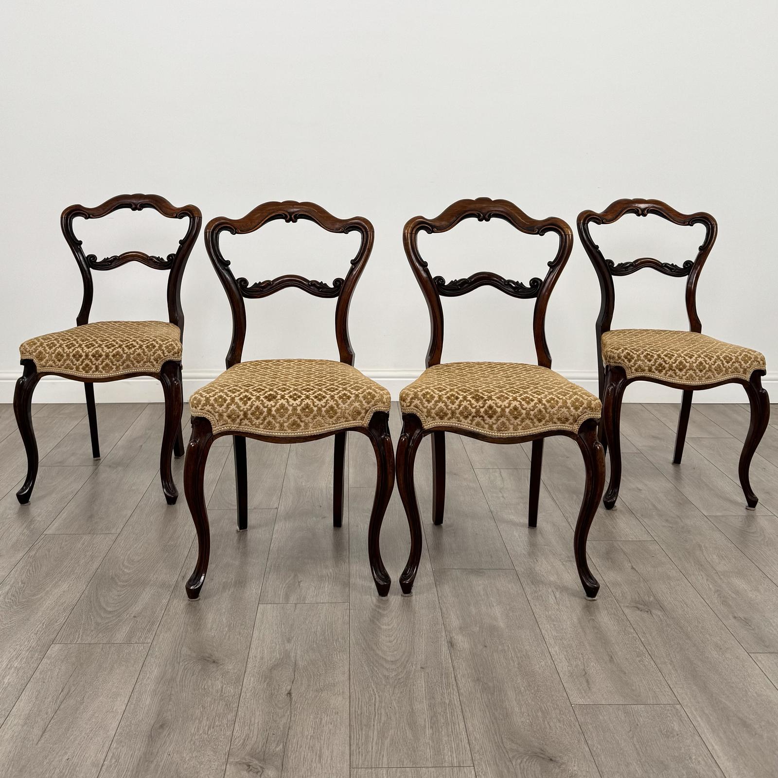 Antique 19th century fine quality set of four mahogany dining chairs, each stood on elegant decorative cabriole legs.