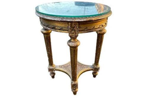 Antique 19th Century French Carved Giltwood & Caned Occasional Table