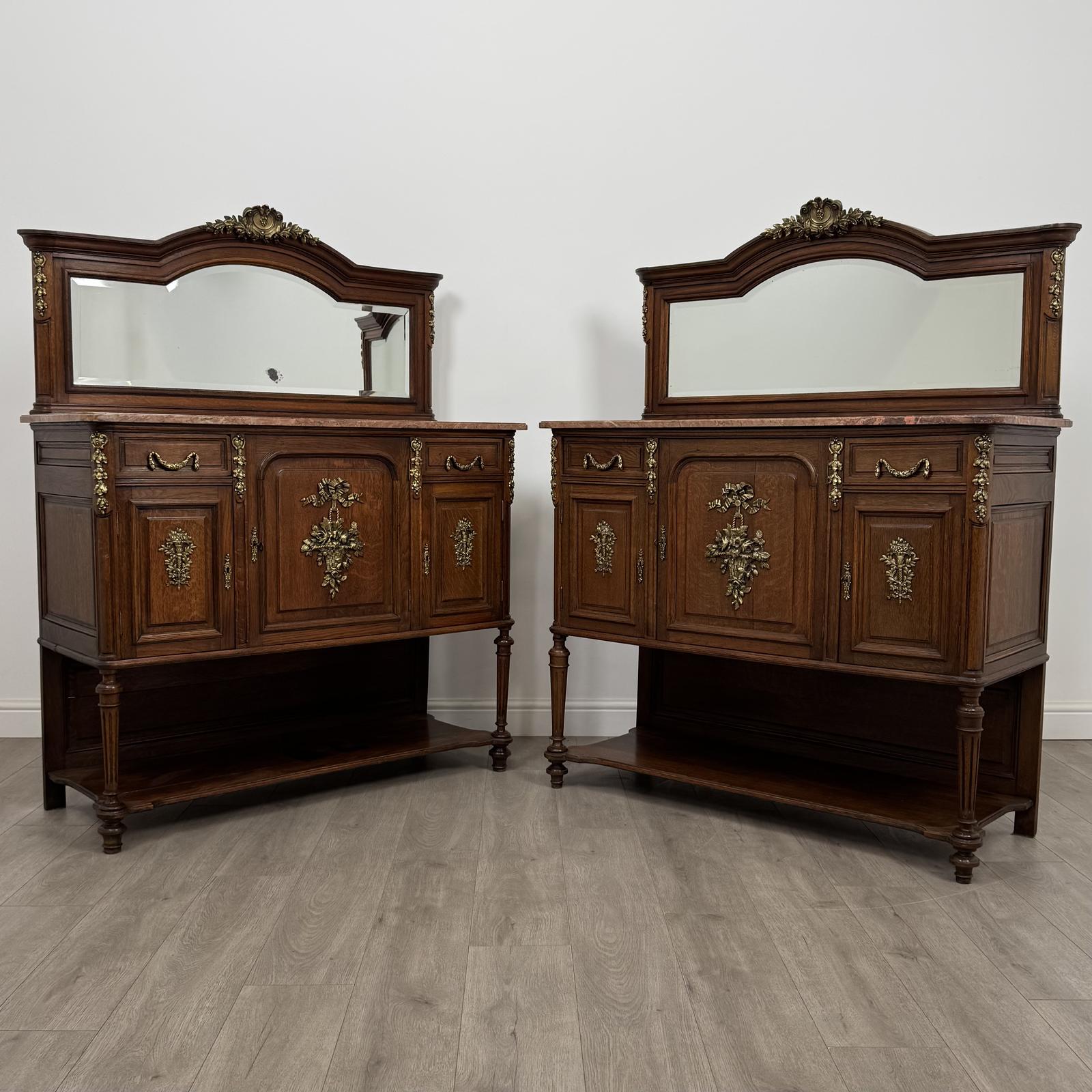The cabinets are of solid construction, very well made, and presented in great condition, with only some slight ageing to one of the mirrors, which adds character. A rare and highly desirable find, these cabinets are a perfect addition to any home and are sure to catch the eye of any visiting guests. Beautifully detailed and elegant, a superb example of 19th century French furniture.