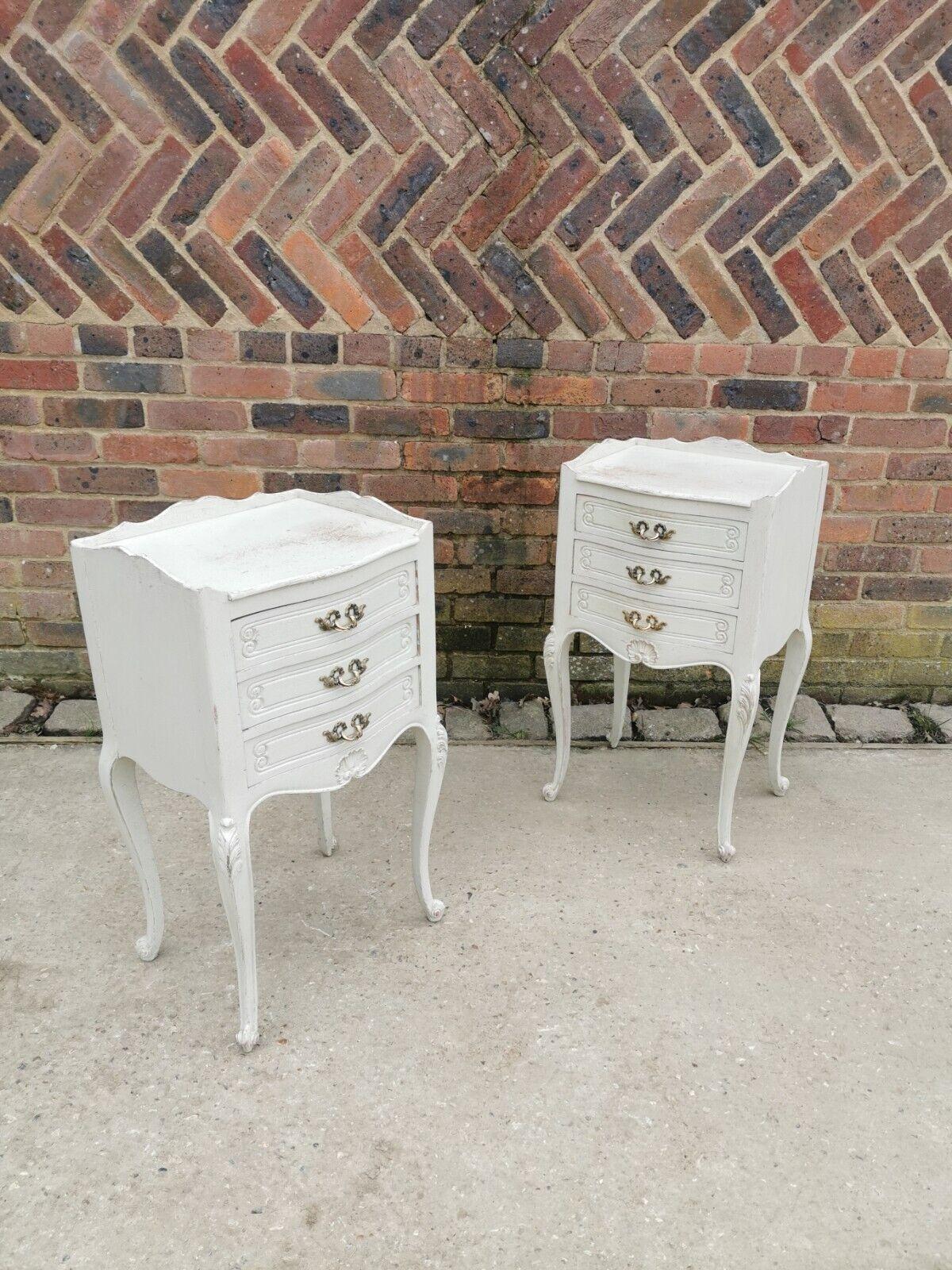 Antique 19th Century French Pair of Ornate Painted Bedside Tables