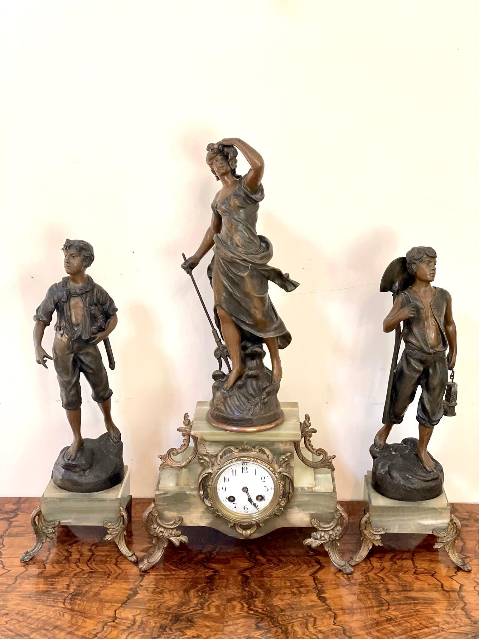 Antique 19th Century French Spelter & Onyx Three Piece Clock Garniture (1 of 18)