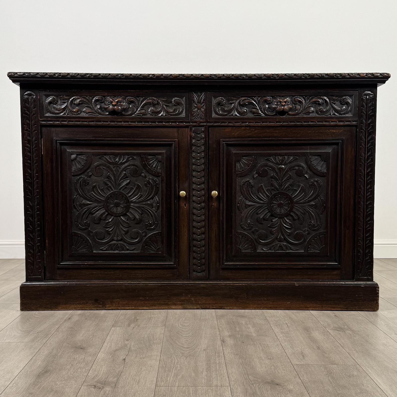 Antique 19th Century Good Quality Carved Oak Sideboard