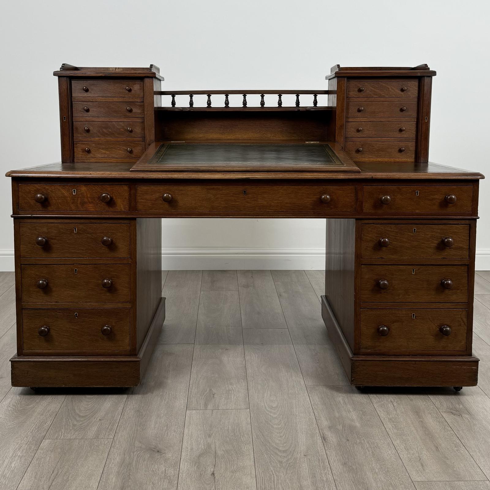 Antique 19th Century Good Quality Dickens Desk In Oak