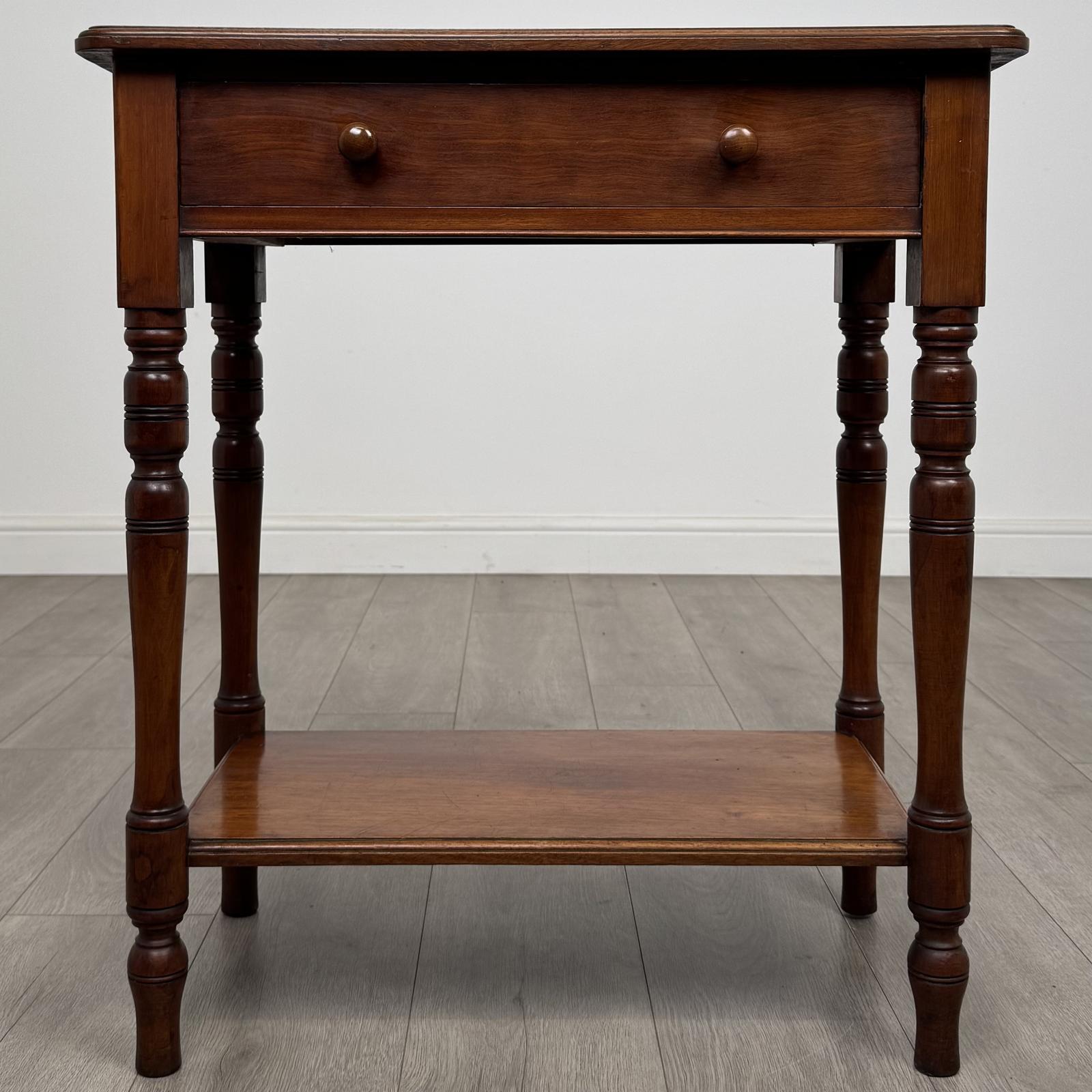 Very well made and of good quality, the table features a single drawer to the upper section, retaining its original knob handle, and a shelf to the base for additional storage or display.