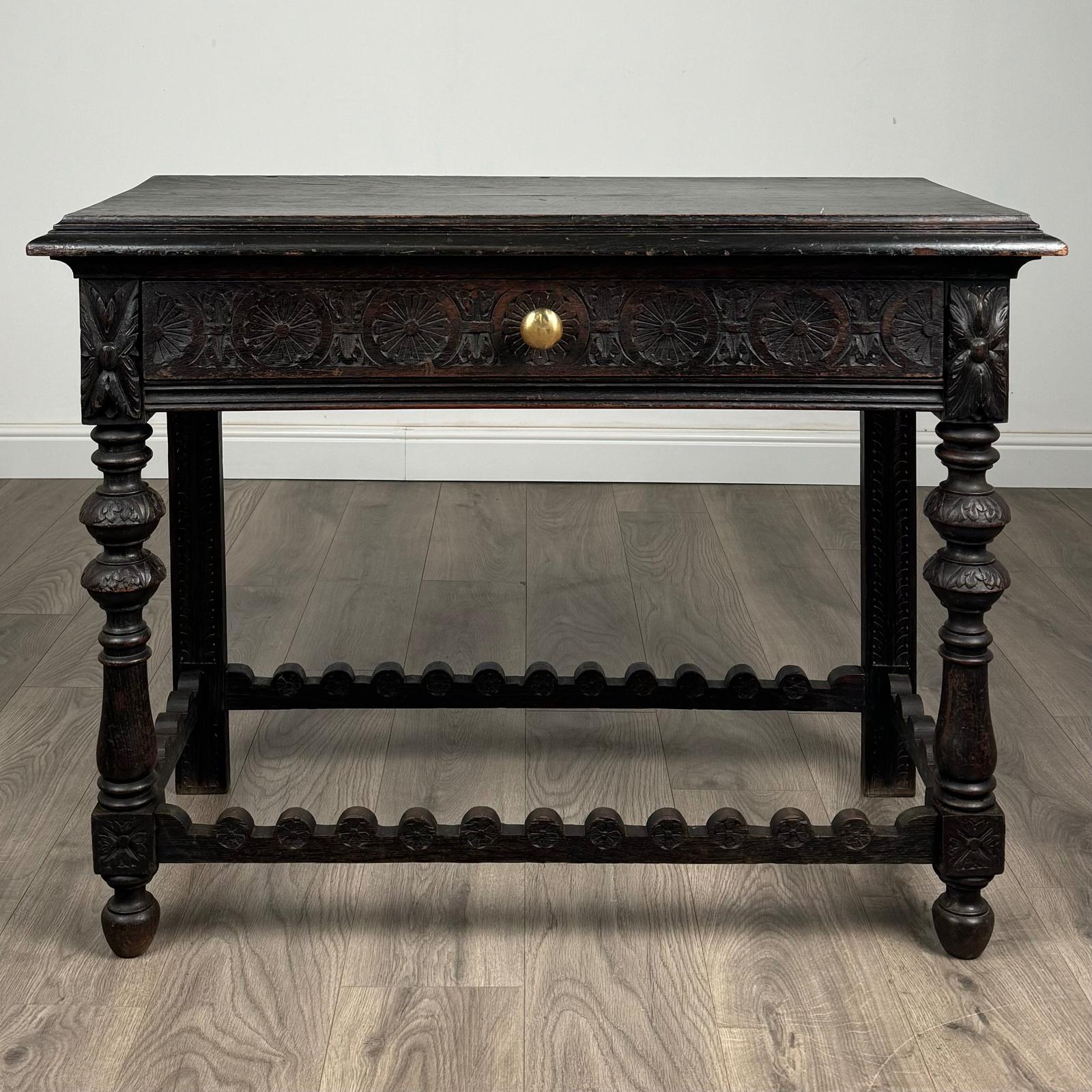 Antique 19th Century Heavily Carved Oak Console Table / Side Table (1 of 12)