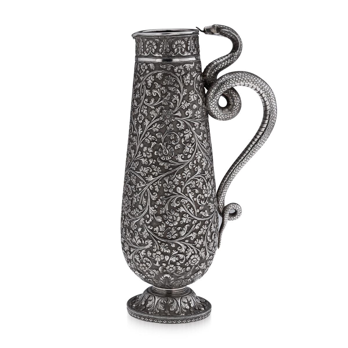 Antique 19th Century Indian Kutch Solid Silver Snake Handle Jug c.1880