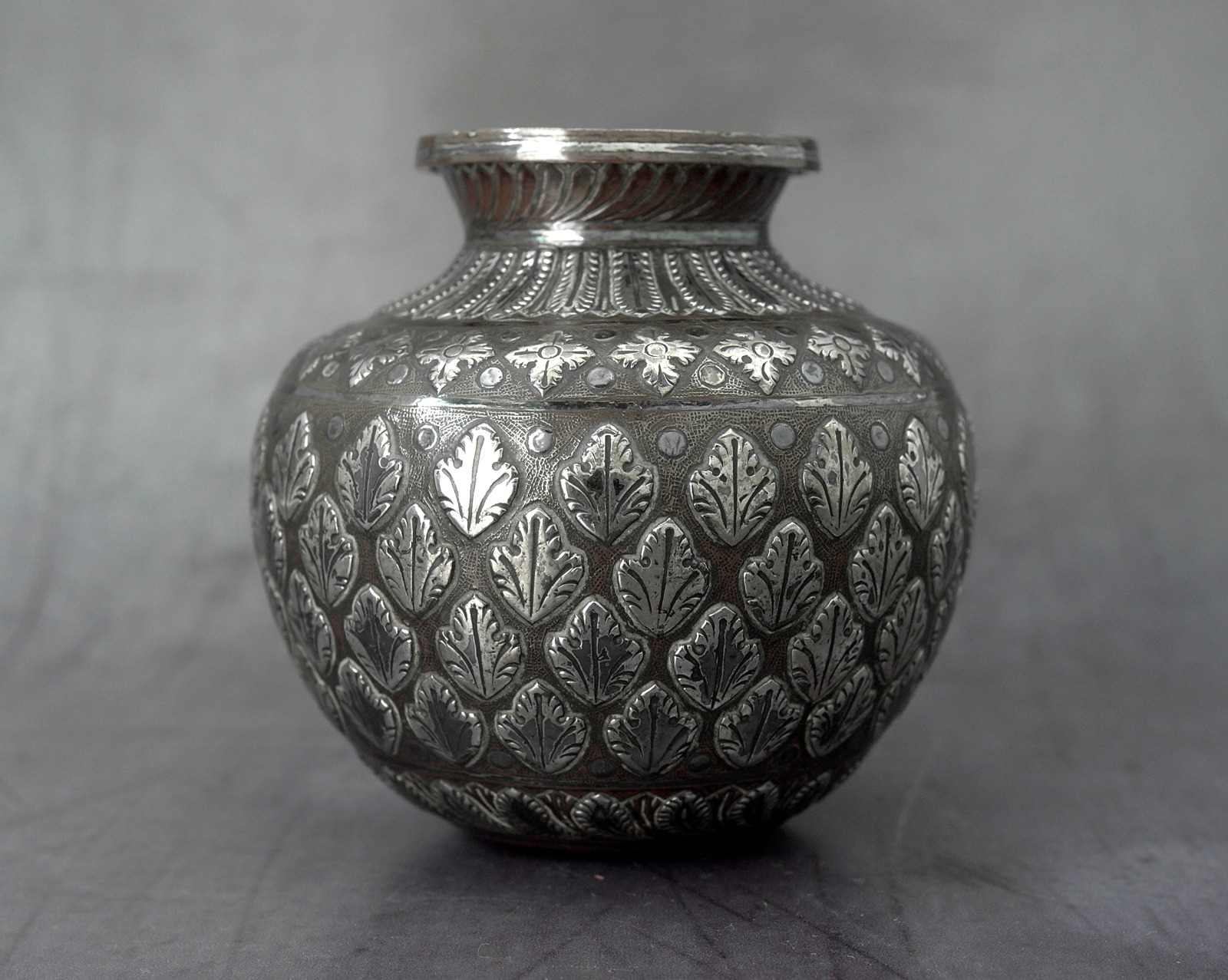 Antique 19th Century Indian Tanjore Silver & Copper Lota Vase, Pot